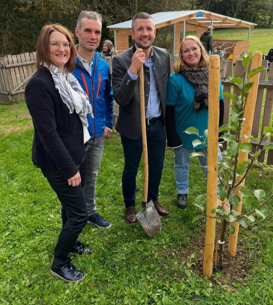 Letztes Wochenende fand ein Tag der offenen Tür statt. Bürgermeister Max Boneberger pflanzte neben dem Landwirtsehepaar Patricia und Richard Graf sowie der Kindergartenleitung Martina Schlich einen Baum.