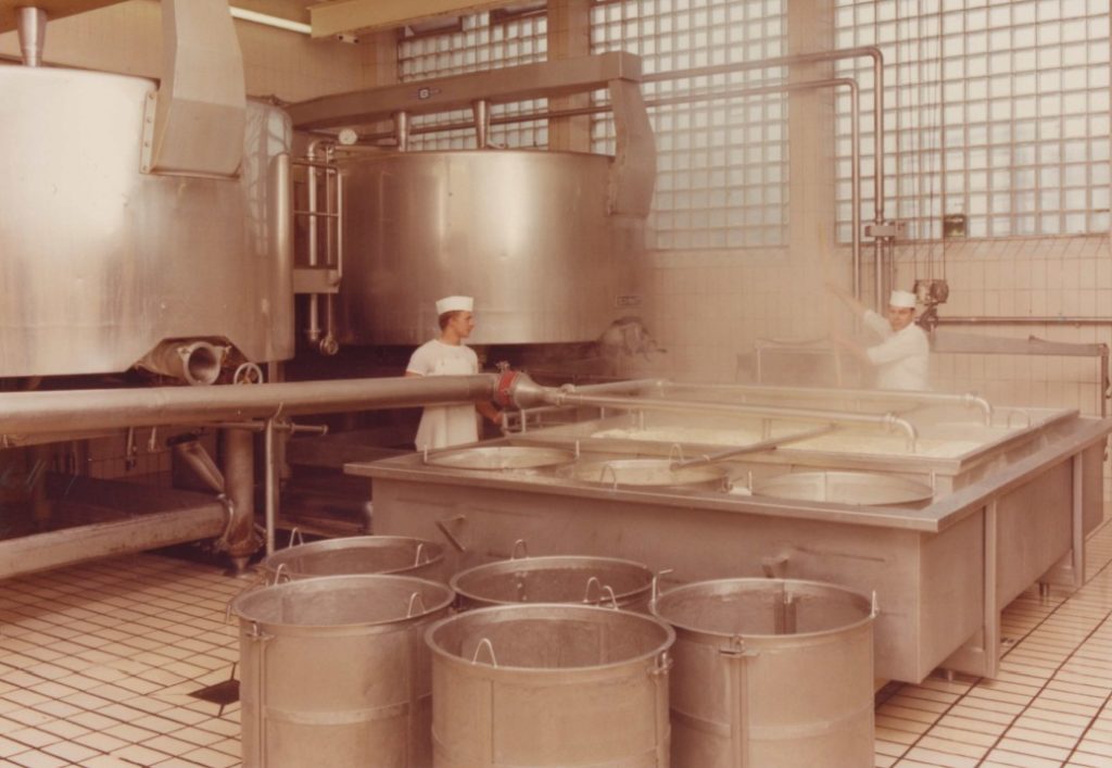 Mit der Fusion mit Krugzell/Buchenberg und der Umbenennung in Allgäuer Emmentalerwerk Kimratshofen eG wurde ein neues Kapitel aufgeschlagen. Die Zahl der Milchlieferanten stieg deutlich, die tägliche Produktion wuchs rasant. Trotz des schnellen Wachstums blieb das Entscheidende erhalten: das Miteinander der bäuerlichen Betriebe, die sich nicht als Konkurrenten, sondern als Partner verstanden. Verbunden durch die gemeinsame Überzeugung, dass Qualität, Fairness und Tradition den langfristigen Erfolg sichern.